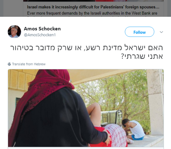 Translation: "Is Israel an evil country, or is it just committing ethnic cleansing on a regular basis?"