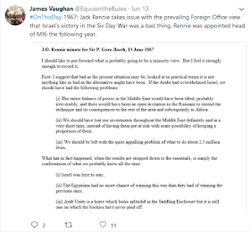 Here, reproduced in a tweet by Dr James Vaughan, of the Department of International Relations at the University of Aberystwyth, is a rather interesting memo that Rennie addressed in 1967 to Sir Paul (later Baron) Gore-Booth (1909-84), permanent secretary at the Foreign Office from 1965-69.