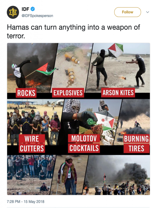 Avigdor Liberman (Twitter, May 15, 2018):Is this inciting Israelis to attack Gazans? Is it inaccurate?