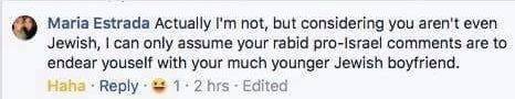 Candidate Estrada made repeated antisemitic remarks about the Jewish state in a series of Facebook comments.