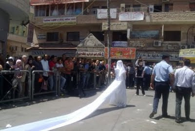 Yesterday brought us one of the more original and mystifying examples of the annual Nakbapalooza pity party. In the center of Ramallah, a city that has been Judenrein for years - a city that is now, for the first time in history, under Palestinian Arab rule - an actress playing a bride, wearing a 50-meter long train on her wedding dress, walked along the streets: