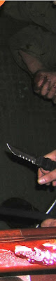 By sheer coincidence, I'm sure, Reuters cropped out the serrated knife, the pool of blood and part of another injured IDF soldier on the top of the IHH picture!
