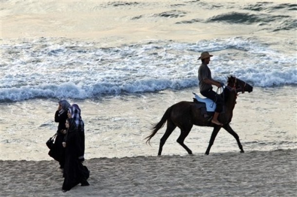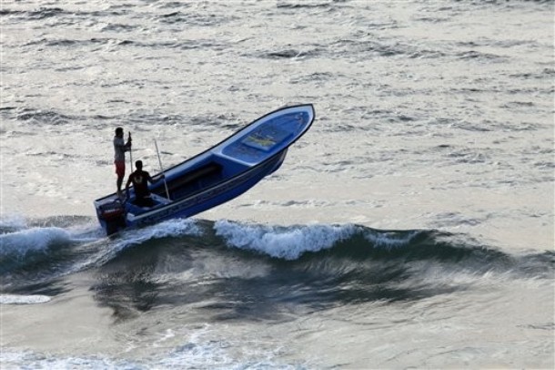 Palestinians enjoy a boat ride in Gaza City, Sunday, June 6, 2010
