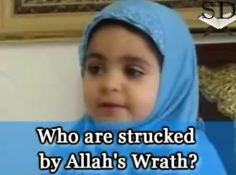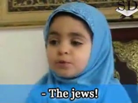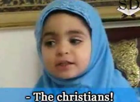 Note that this is not education. This is brainwashing a child to parrot back bigoted responses that she doesn't even understand, but her teachers will fill in the blanks after she already has been thoroughly brainwashed.