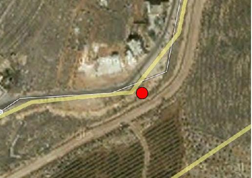 At the point where the road curves, the Blue Line is somewhat closer to the road (Google Maps yellow line only approximates the Blue Line; you can see what is apparently the real Blue Line right above it):