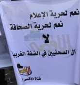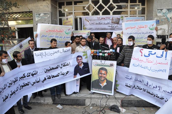 UPDATE: An email correspondent who knows Arabic looked at the photos are figured out that these are Hamas "journalists" who are protesting the PA imprisoning their colleagues in the West Bank!
