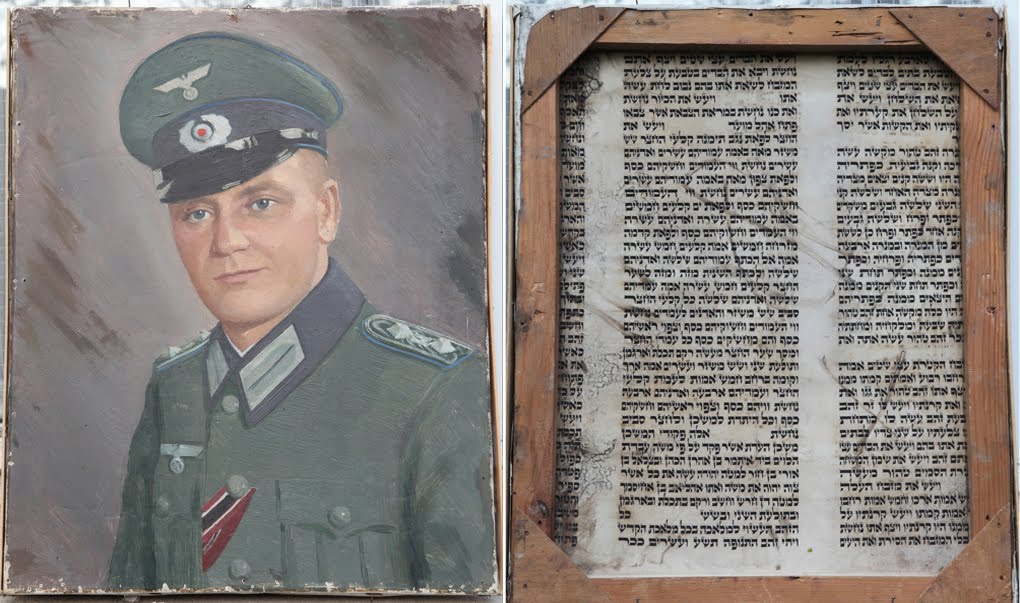 On removing the paintings from the walls, the new owners discovered that these likenesses were painted on the back of sections of Torah scrolls. The texts of the scrolls were perfectly legible. One could clearly read from Sefer Shemot, parshiyot Ki Tissa and Vayakhel (Exodus 34:9-35:16), and from parshiyot Vayakhel and Pekudei (Exodus 37:13-39:6).