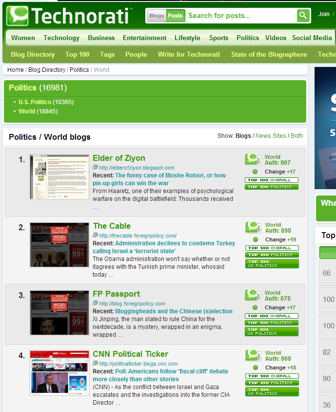 Technorati ranks some 18,000 blogs in that category.