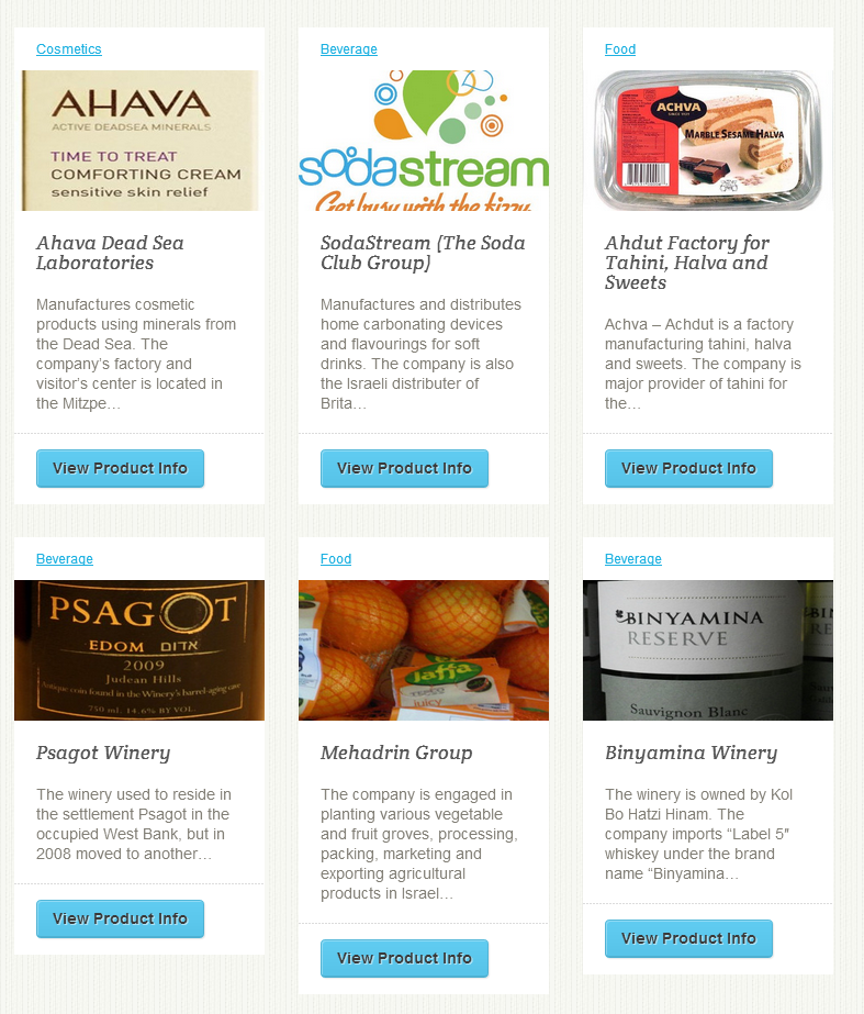 Of course, their list of products is a very good one to use if you want to support Israel. The page is so attractive, it could be a shopping cart page!