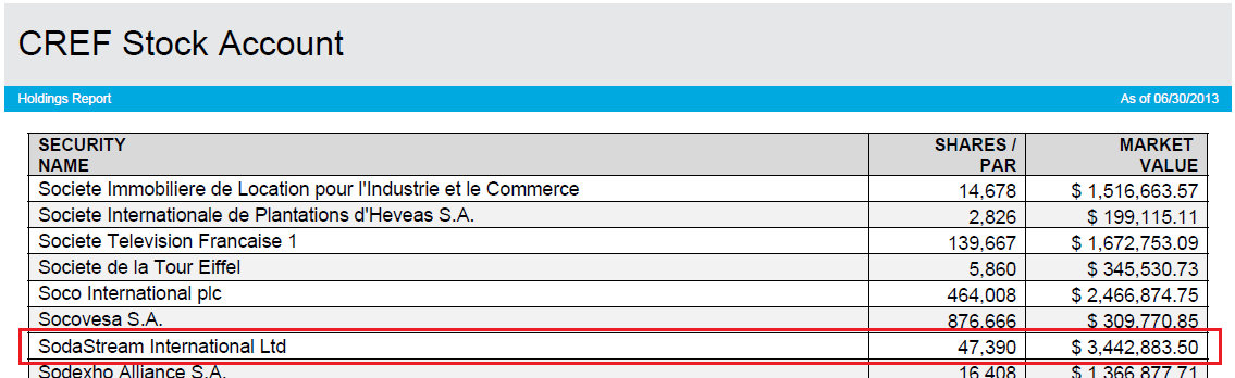 I just received two PDF documents, showing TIAA-CREF's holdings in their CREF Stock Account and in the TIAA-CREF Growth and Income Fund as of June 30, 2013. They detail their holdings in these funds in full detail, and the documents were generated on July 23.