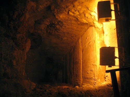 As anyone who has actually been to the Kotel knows, these photos are taken from the building immediately to the left of the outdoor plaza where many pray (especially when it rains.) The wall is in fact the Kotel itself. Nothing underground here, although from within that building there are shafts that go down to the bottom of the Kotel itself.