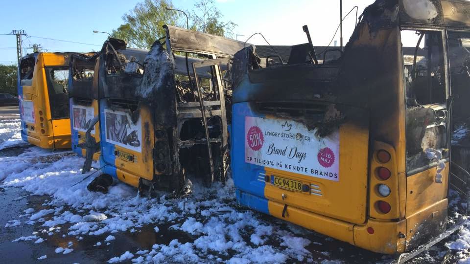 Four Danish buses that had recently removed pro-Palestinian ads were destroyed in a suspected arson attack.Based on the graffiti, which said "Boycott Israel - Free Gaza," it sounds like the anti-Israel community in Denmark reacted a bit strongly to their messages being removed.
