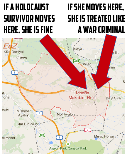 The Netherlands decided to cut pensions of survivors living beyond the Green Line. Channel 2 news reporter, Lee Na'im, reported that "D.", a 90-year-old Holocaust survivor from the Netherlands, had recently decided to immigrate to Israel and be with her family. She moved to a neighborhood in the Modi'in area, just beyond the Green Line.