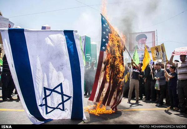 The crowd in Tehran chanted "Down with US, Israel and the House of Saud," and carried placards that declared "Zionist soldiers kill Muslims" and "the Saudi family will fall".