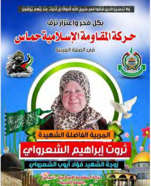 The Meir Amit Center adds that her daughter is married to a jailed Hamas member - and Hamas issued a "martyr" poster for her!