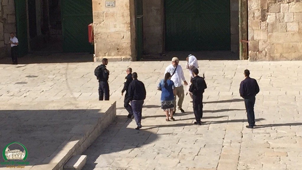 This came amid intensified presence of outdoor students and Islamic Waqf personnel who barricaded themselves inside the compound to confront illegal Jewish entry to the Islamic holy site.