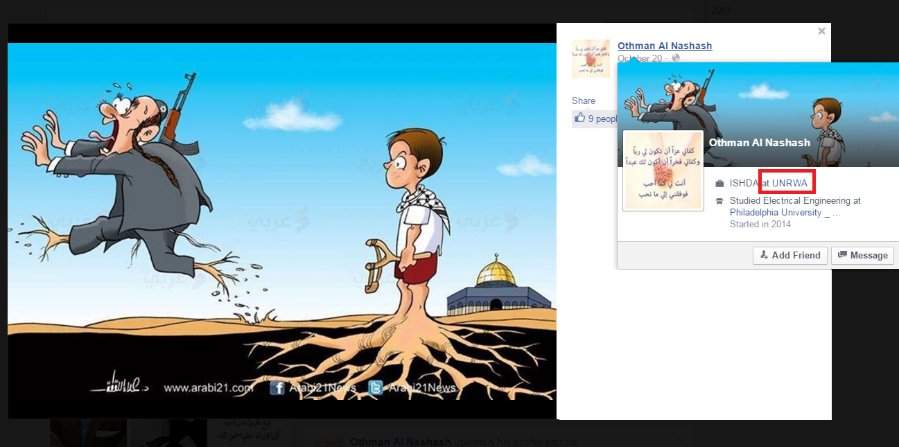 The implication is that Jews have no real roots in Israel, while the Palestinians do, and a simple slingshot proves how easily the frightened Jews run away.