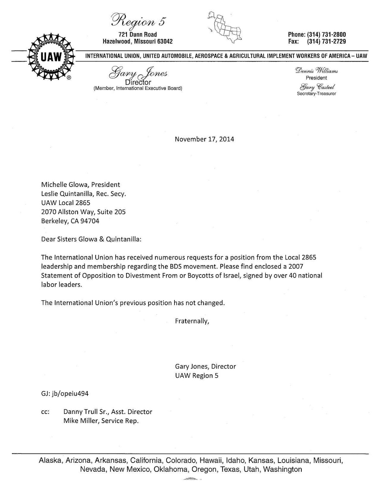 In a landmark decision yesterday, United Auto Workers (UAW) International Union granted an appeal filed by a member of the University of California student group Informed Grads, thereby striking down a Boycott, Divestment, and Sanctions (BDS) resolution adopted by UAW Local 2865 last year. UAW 2865 represents graduate student workers at all of the University of California campuses. UAW International, the body that oversees all UAW locals in the United States, set national precedent by denying the local organization the right to adopt such a divisive and alienating measure.A victory for sanity.