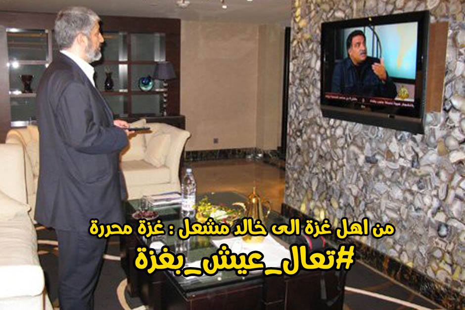 24 year old and unemployed Gazan Ahmed Nafez started the hashtag "#Khaled_Meshal, #Come_live_in_Gaza" as a way to express indignation and anger at the Hamas leaders in Gaza.