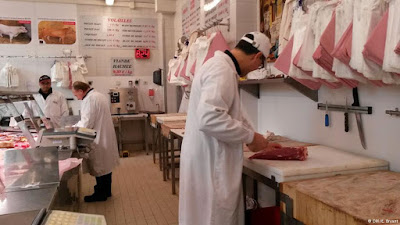 It's Friday morning. In about an hour, the Boucherie de l'Argonne will be closed. The Muslims working here will head to afternoon prayers. The Jews will prepare for Shabbat. A practical accommodation for staff sharing similar roots and cultural references.