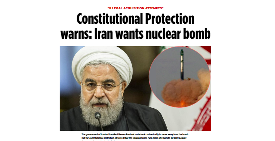 There are controversial sentences that can be found on page 265 of the Constitutional Protection Report: Obviously Tehran tried to acquire materials beyond what is needed for civilian nuclear technology.
