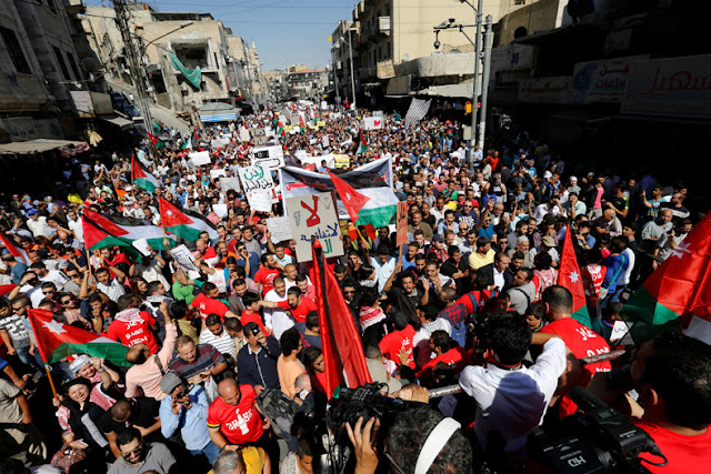 Jordanians swarmed through the streets of Amman on Friday in a large demonstration titled "The Enemy's Gas is Occupation." Chanting "Raise your voice for dignity" and "No to the shameful deal," Jordanians of all backgrounds and occupations expressed their rage at a secretive US$10 billion gas deal that will supply 1.6 trillion feet of gas to Jordan from the offshore Israeli-controlled Leviathan natural gas field over the course of 15 years.