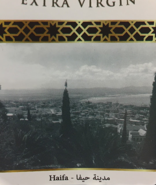 Reader Josh K. saw this olive oil at a local store, with pictures of "Palestinian" cities Haifa, Acre and Tiberias.