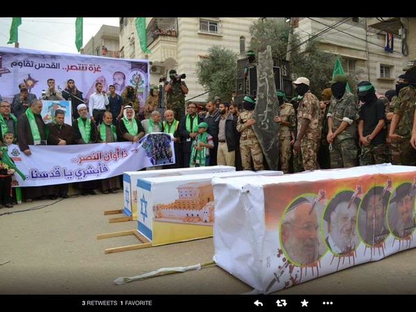 And that same 2014 parade is proof that Hamas is a Jew-hating organization. It placed a picture of the Jewish Temple on a coffin: