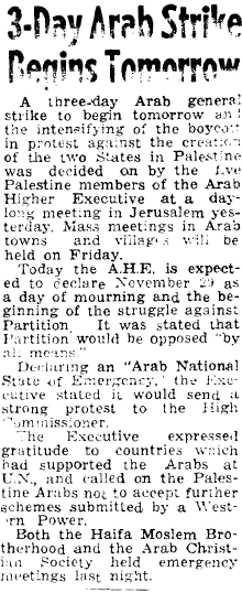 For months before the vote, Arab terrorists held their fire, hoping that the UN would not recommend a truncated Jewish state along with an Arab state in the area of the British Mandate. But within hours of the UN partition resolution, the gloves were off.