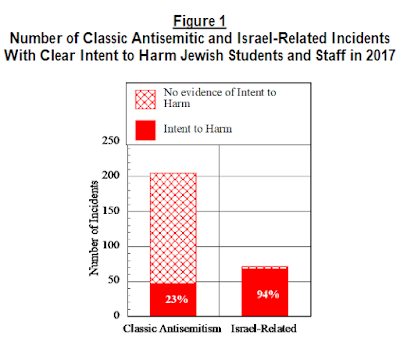 While there were more antisemitic incidents (205) than Israel-related ones (71), far more of the Israel-related incidents (67 / 94% vs 48 / 23%) showed an intent to harm Jewish students and contributed more towards creating a hostile environment.