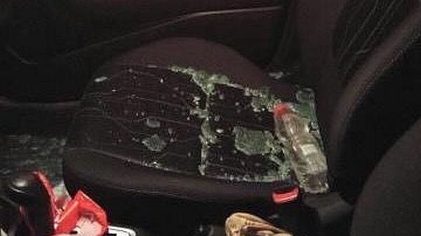 Palestinians throwing stones at cars on a road smashed a car's window near Hizma on Monday.