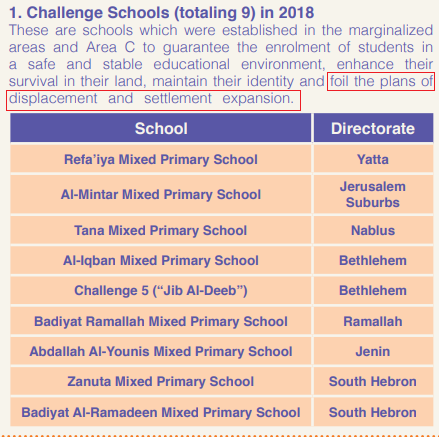 A small detail on a fact-sheet about the Palestinian Ministry of Education 2018 budget: