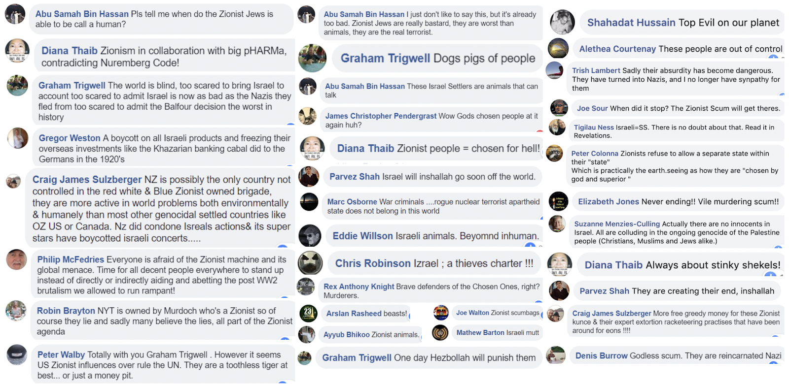 For example, comments on the Kia Ora Gaza Facebook page suggested that Israel was responsible for the disappearance of Malaysian Airlines flight MH370, posts compared Israel to Nazi Germany, called Jews dogs, and wished for their “punishment”.