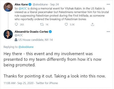 The approaching 25th anniversary of Israeli Prime Minister Yitzchak Rabin’s assassination on 4 November 1995 has seen leading left-wing Democratic Party Congresswoman Alexandria Ocasio-Cortez (AOC) cancelling her planned attendance at a memorial event organised by leftist Americans for Peace Now on 20 October.