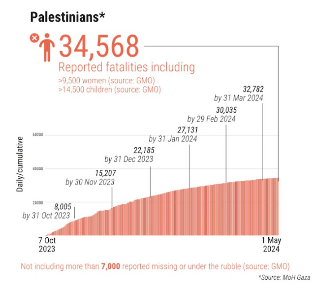 The UN's OCHA dutifully transcribed Hamas' made up numbers, showing the rise from 7,000 to 10,000 missing between May 1 and May 3.
