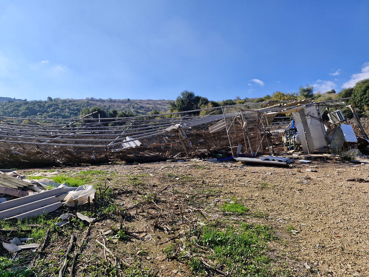 Our “additional war” is to restore the damaged agricultural infrastructure, the farmer explained. “Feed bins were destroyed. During the war mine was completely damaged but I repaired it because I still had poultry in the structure. The assessors said because you repaired it you don’t have to replace it, so no compensation for me even though it was already 20 years old. The others will get compensation to buy new ones prorated based on the remaining useful life before the war. A feed bin today costs ten thousand shekels. Repairing the structures themselves will cost 20 to 30 thousand shekels from your own pocket.”