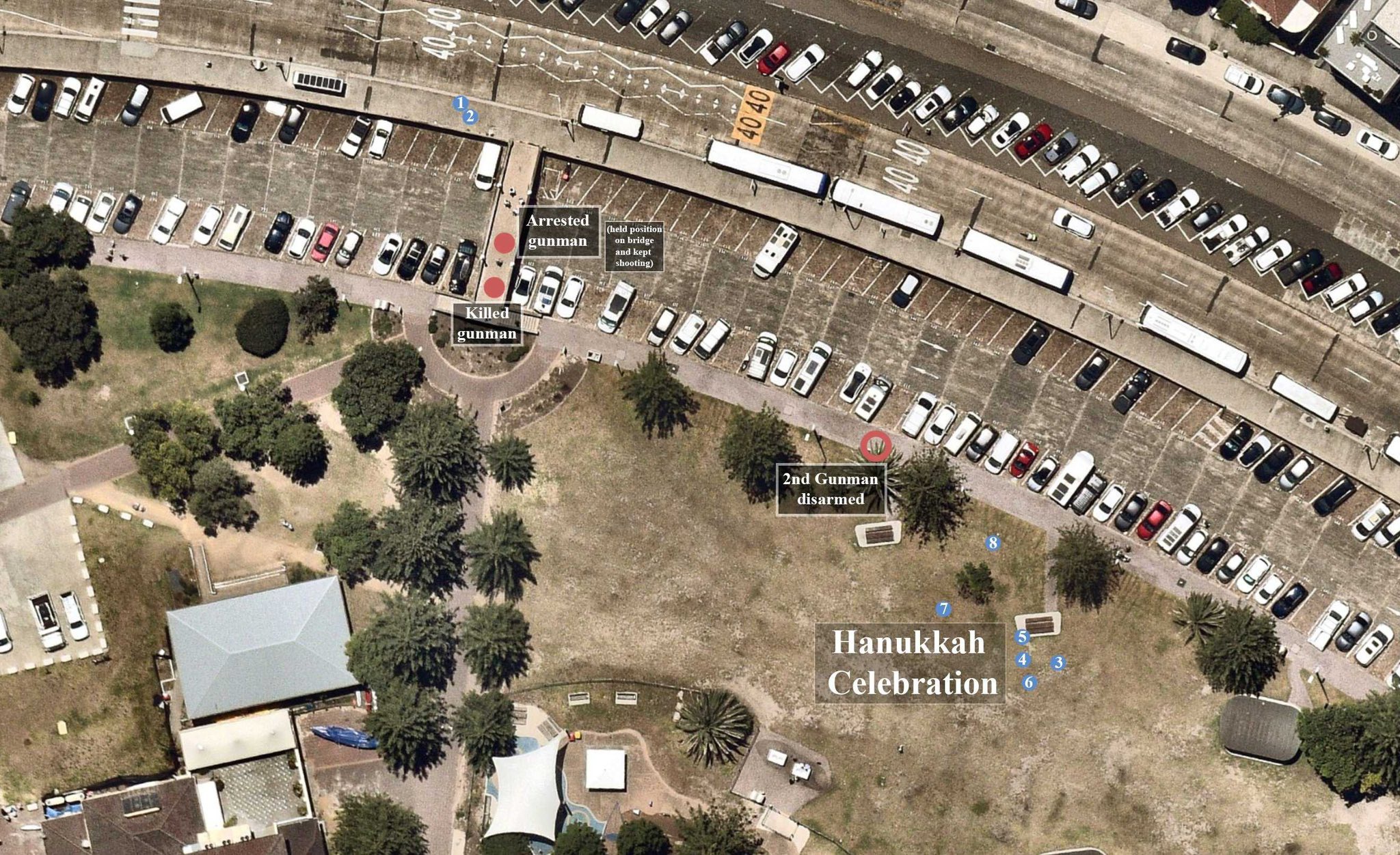 The two men, dressed in black and carrying firearms, opened fire at families attending the Jewish Hanukkah festival. Two explosive devices were found on the scene.