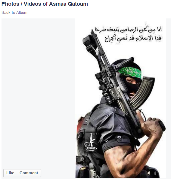 I believe that this is her daughter; she has other photos of her with jihadist slogans.