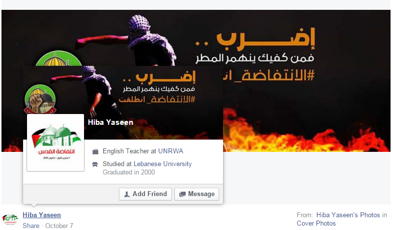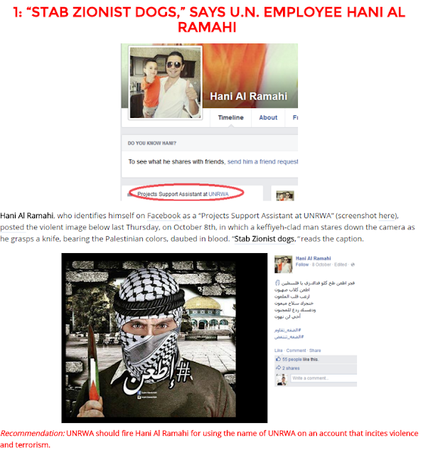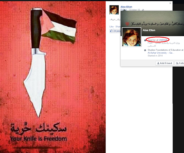 By the way, one UNRWA worker I exposed recently, Sohaib Fayyad, simply eliminated any mention of UNRWA in his Facebook page and keeps on posting hate.
