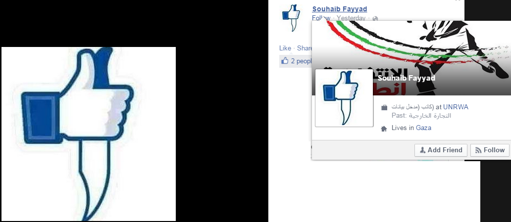 Remember Sohaib Fayyad, the UNRWA employee who changed his Facebook icon to a graphic of a "Like" icon modified to hold a stabbing knife?