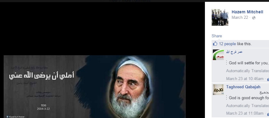 Hazem Mitchell, UNRWA teacher, supports Hamas in this cover photo:
