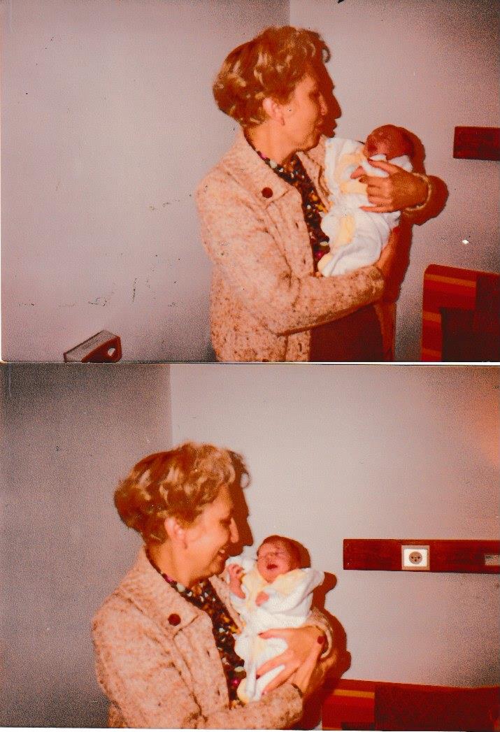 I put out photos of my mother in the shiva house, and there was one photo where you could see just the edge of her face, and she was glowing with love for a newborn grandchild she held, and you could see it, that love, though much of the picture was in shadow, including the object of her love, obscured. How it must have hurt her, to be so far away from them, her grandchildren, whom she would have loved to have cuddled and loved and known.
