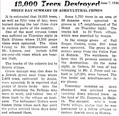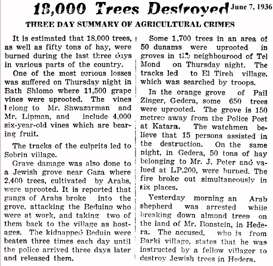If you look at the categories of damage listed, you can see that most of the alleged damages still would allow harvesting of some olives, so the real damage is even less. The number of fruit bearing trees cut down completely is probably zero, since olive trees are extraordinarily difficult to cut down or uproot.