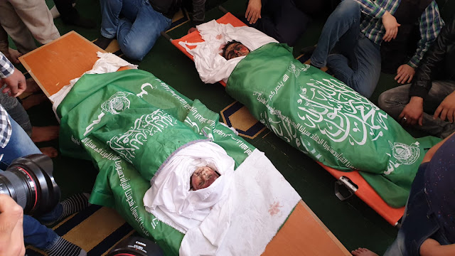 The Fallujah cemetery in Jabalya, where 5 children were killed by an Islamic Jihad rocket. Note the spray pattern of tiny holes from the shrapnel that PIJ uses to maximize death and damage. |