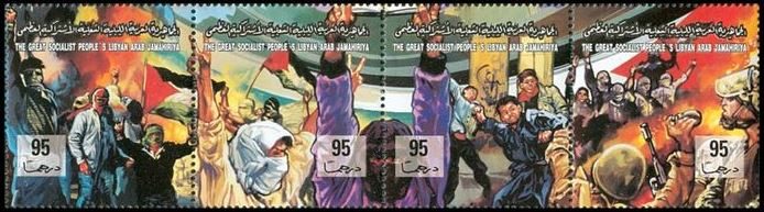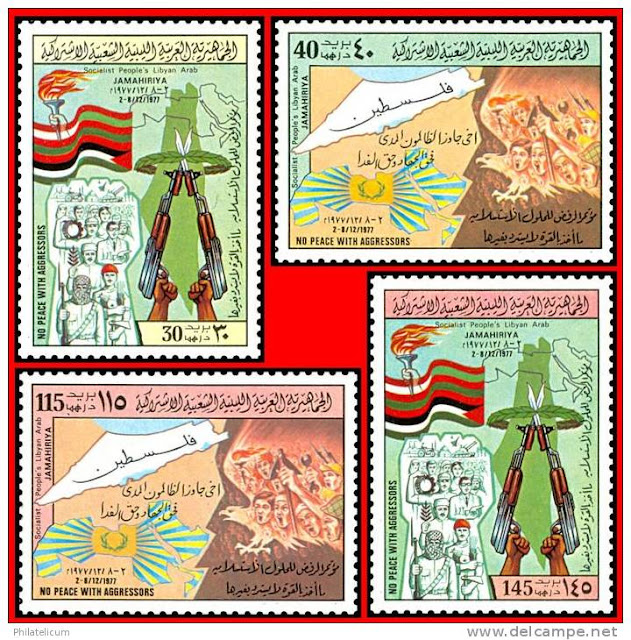 Libya's first stamps on the topic, as far as I can tell, was this 1971 series promoting Fatah terrorism: