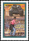 2001: Celebrating the second intifada. No suicide bombings celebrated in Syrian stamps, alas.