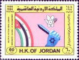 This 1973 stamp commemorated the 1968 Battle of Karameh between Israel and Jordan/PLO. Israel destroyed the camp which was responsible for terror attacks but Jordan considered this a victory. Ironically, the battle led to the rise of Black September, which Jordan had to battle and kill thousands of Palestinian Arabs.