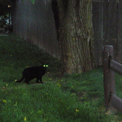 The flash reflected back from the cat's eyes in a pretty sinister way...