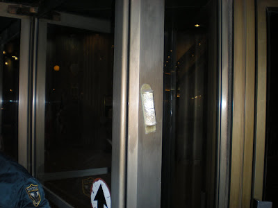 Last night, I noticed that the hotel I am staying in had a mezuzah on the revolving door:
