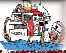 Nazi, Soviet, and, more recently, Arab anti-Semitic caricatures often portray Jews as spiders, cockroaches, and Octopuses – dehumanizing Jews by turning them into animals that are destructive, inhuman and evil. The cartoon below, by the notorious anti-Zionist cartoonist, Carlos Latuff, was posted on the “progressive” Jewish anti-Zionist blog, Mondoweiss recently[ii] – by a frequent Mondoweiss blogger named Seham[iii] – in reference to the Gaza flotilla incident.